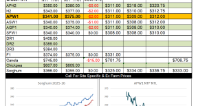 Over the break US futures have generally been flat, a few cents down and a few cents up so little is expected to change on the back of US futures here today. The AUD is a little softer than it was on Wednesday and in the case of canola it should more than counter any negative influence from a softer ICE futures market last night.