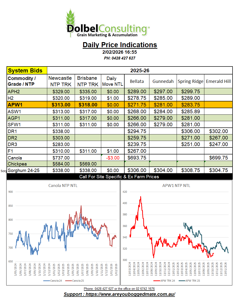 Tunisia picked up 100kt of soft wheat and 100kt of durum mid week. The durum was estimated to have been bought at US$323.89/t C&F for March / April. This is a tad under their last tender, and equates to an XF LPP equivalent price of roughly AUD$325, not very encouraging.