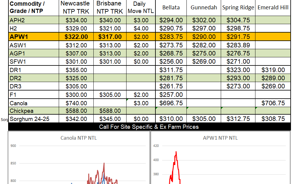 International wheat markets were generally lower overnight, both cash and futures. There was a 0.51% slip in the AUD against the USD which has helped turn a lot of the weaker closes into flat or even slightly firmer comparisons...